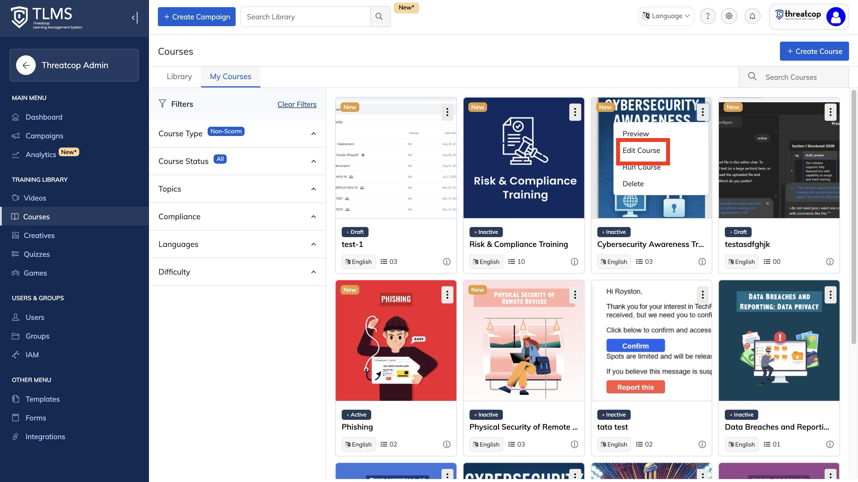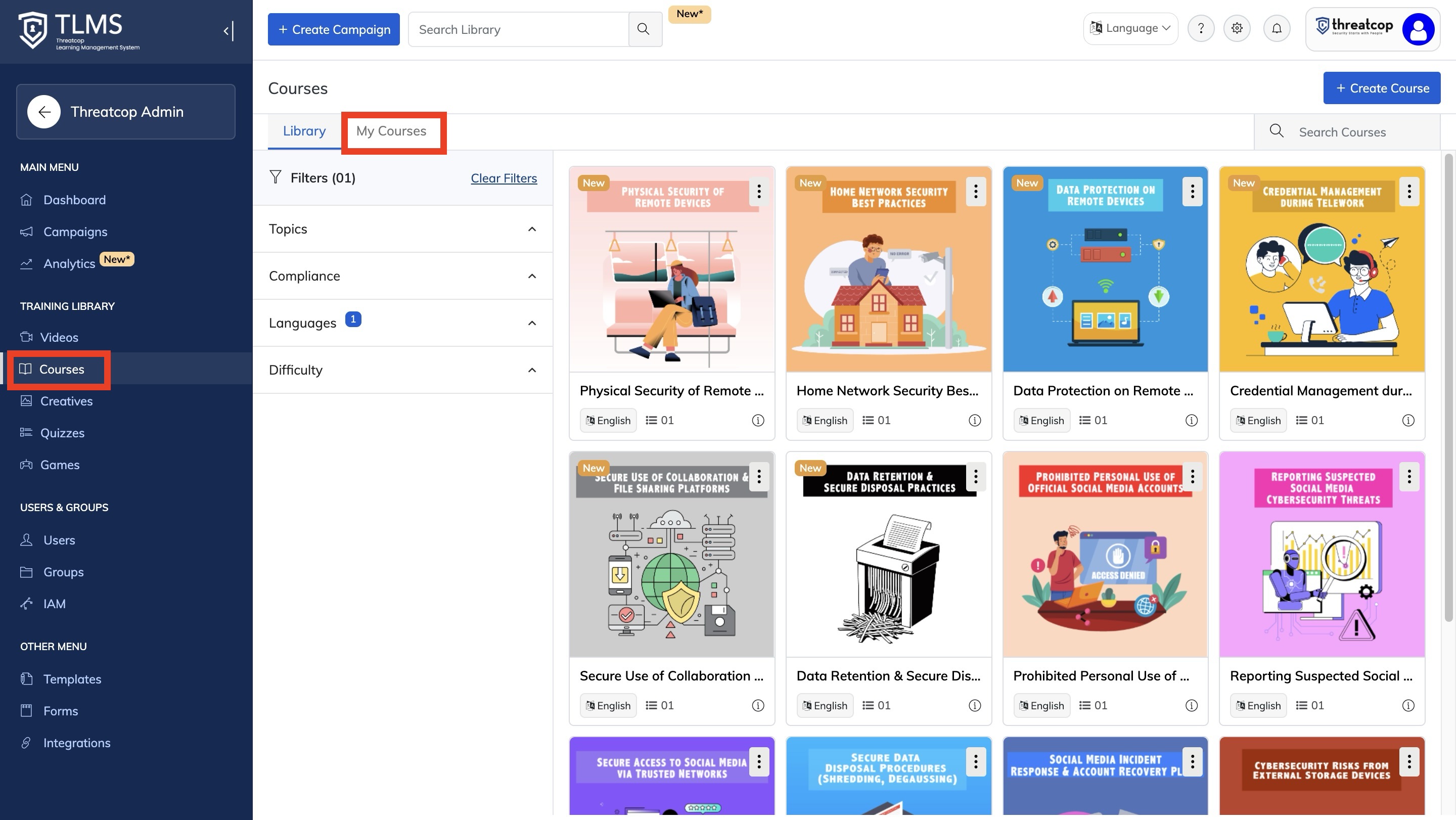 1. Go to Courses and My Courses from the TLMS dashboard.