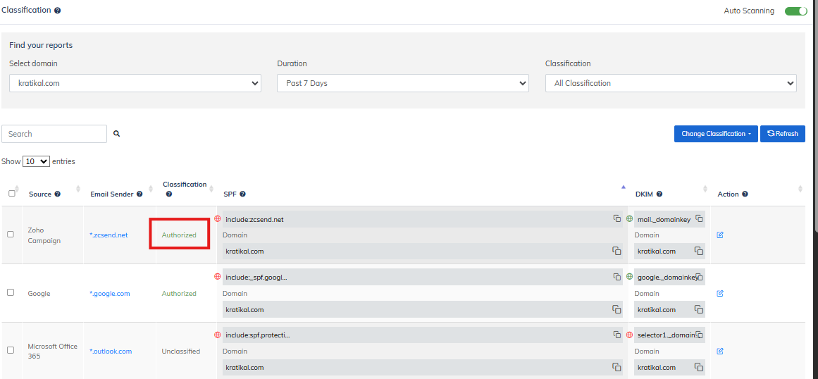 TDMARC lets you check the different email sources that are utilizing your domain as well as which of these sources are sending spoofed emails from your domain. The classification feature by TDMARC allows you to identify the genuine sources and ...