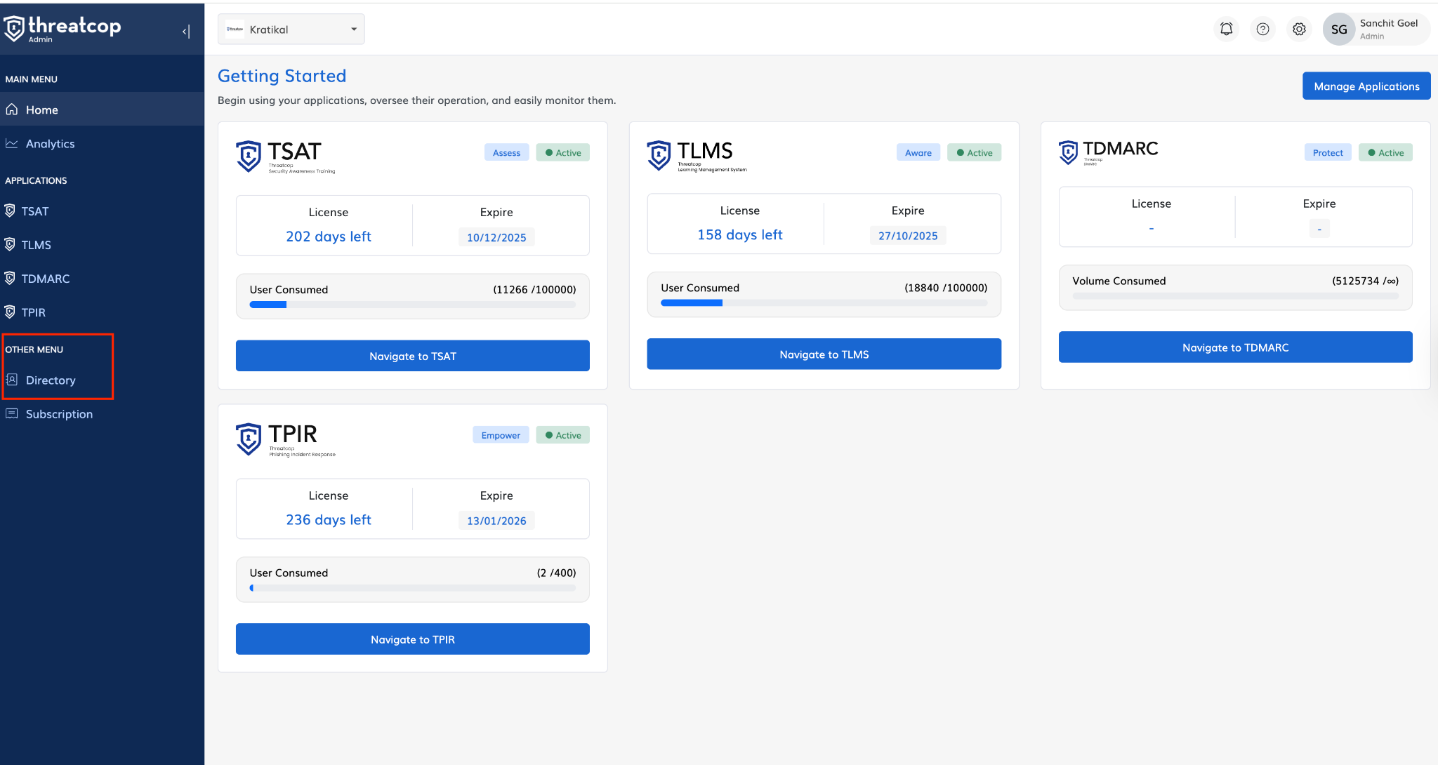 - From the left-hand navigation menu, click on “Directory” (located under the “Other” section).